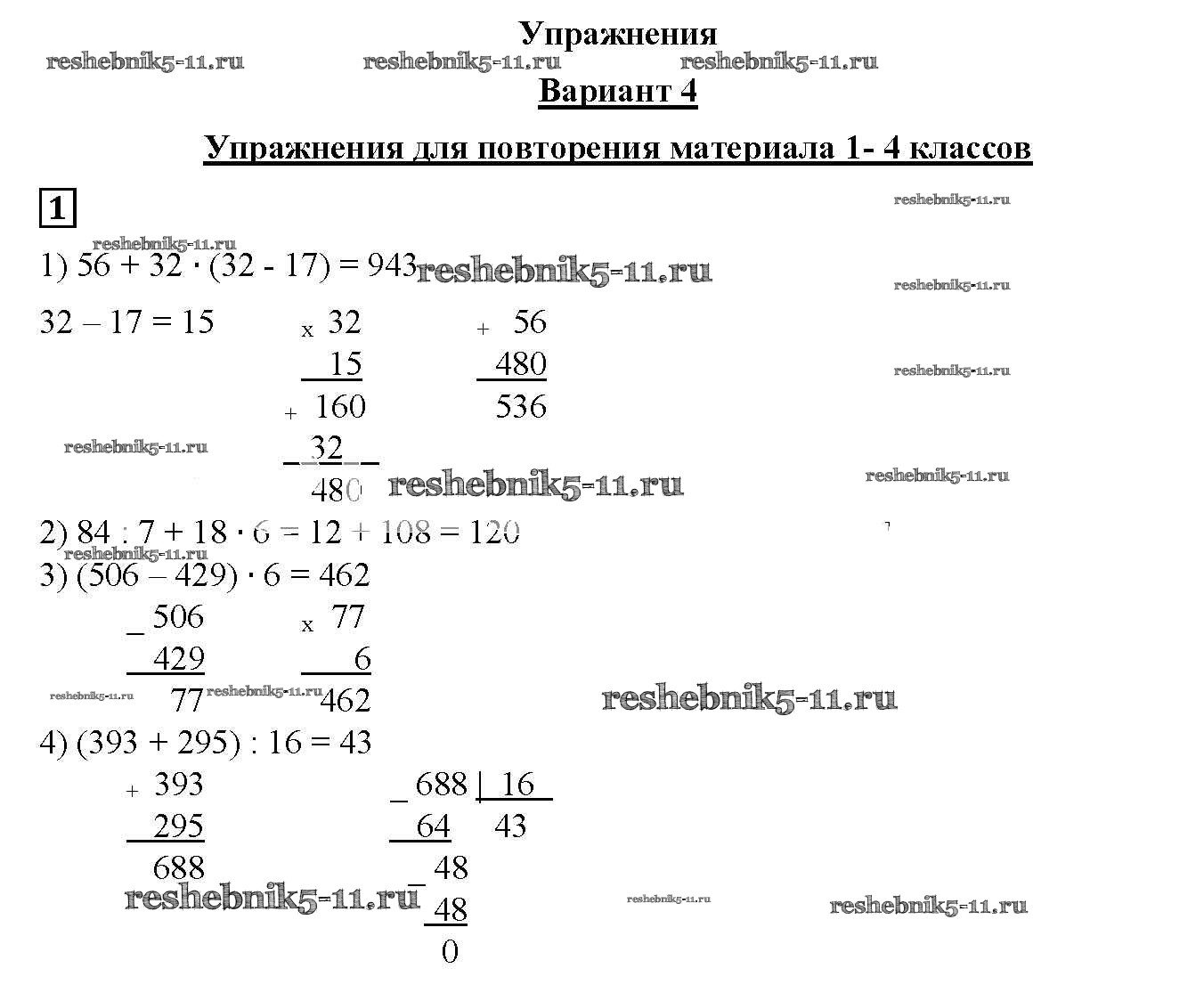 Готовая домашняя работа с ответами по Математике за 5 класс Мерзляк, Полонский, Якир, Рябинович Дидактические материалы Алгоритм успеха Вентана-граф 2017 ФГОС - Вариант 4 1