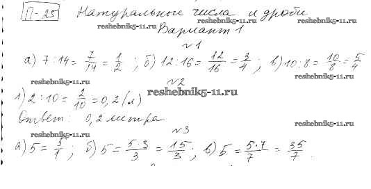 Готовая домашняя работа с ответами по Математике за 5 класс Дорофеев, Кузнецова Дидактические материалы Просвещение 2017 ФГОС - Проверочная работа 25. Варианты 1