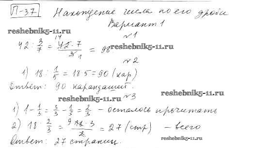 Готовая домашняя работа с ответами по Математике за 5 класс Дорофеев, Кузнецова Дидактические материалы Просвещение 2017 ФГОС - Проверочная работа 37. Варианты 1