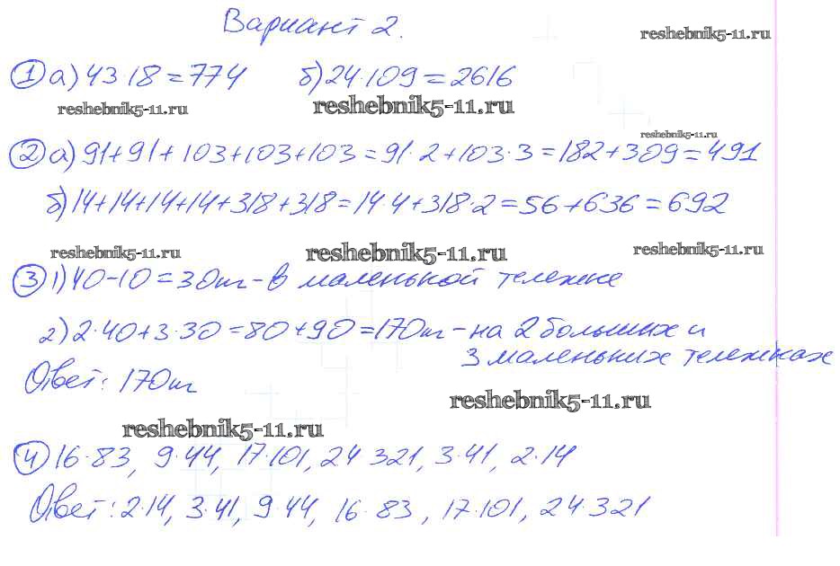 Готовая домашняя работа с ответами по Математике за 5 класс Попов Самостоятельные и контрольные работы УМК Экзамен 2016 ФГОС - СР-11. Варианты 2