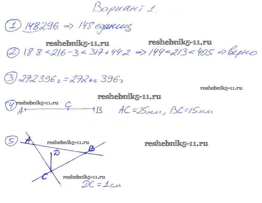 Готовая домашняя работа с ответами по Математике за 5 класс Попов Самостоятельные и контрольные работы УМК Экзамен 2016 ФГОС - КР-1. Варианты 1