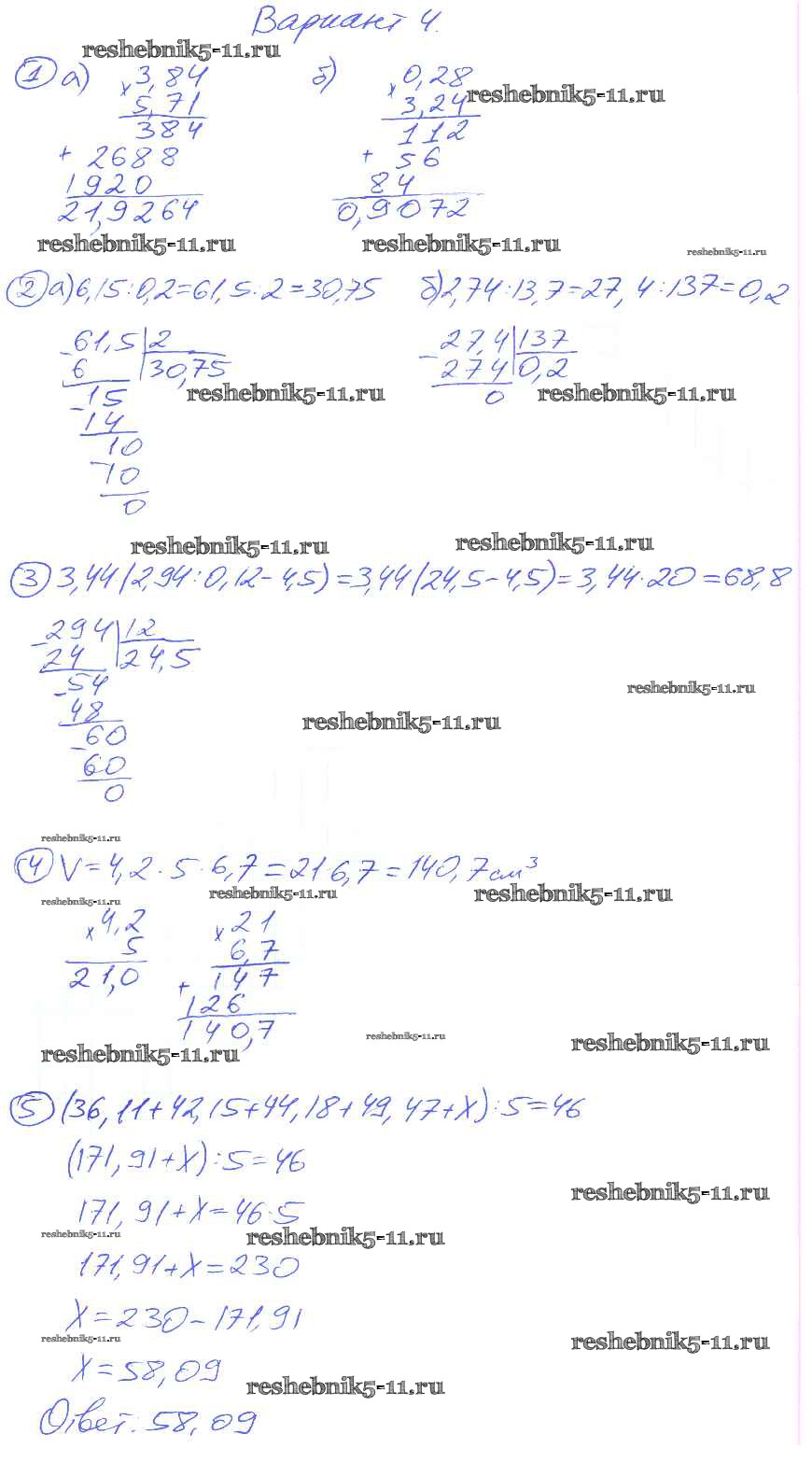 Готовая домашняя работа с ответами по Математике за 5 класс Попов Самостоятельные и контрольные работы УМК Экзамен 2016 ФГОС - КР-11. Варианты 4