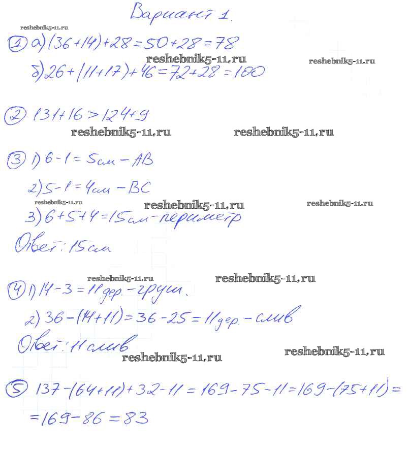 Готовая домашняя работа с ответами по Математике за 5 класс Попов Самостоятельные и контрольные работы УМК Экзамен 2016 ФГОС - КР-2. Варианты 1