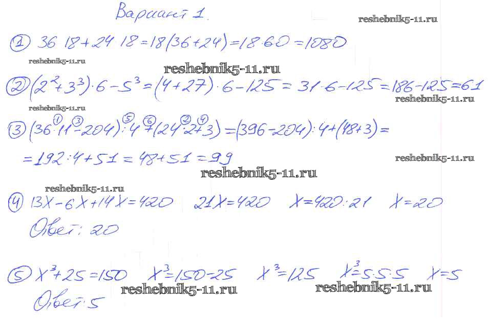 Готовая домашняя работа с ответами по Математике за 5 класс Попов Самостоятельные и контрольные работы УМК Экзамен 2016 ФГОС - КР-5. Варианты 1