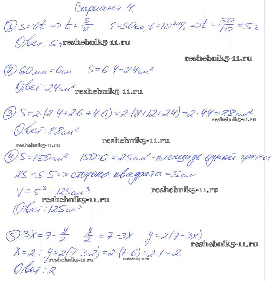 Готовая домашняя работа с ответами по Математике за 5 класс Попов Самостоятельные и контрольные работы УМК Экзамен 2016 ФГОС - КР-6. Варианты 4