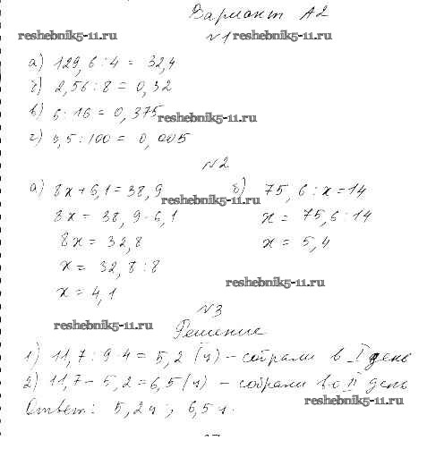 Готовая домашняя работа с ответами по Математике за 5 класс Ершова, Голобородько Самостоятельные и контрольные работы Илекса 2015 ФГОС - СР-24. Варианты А2