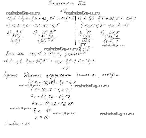 Готовая домашняя работа с ответами по Математике за 5 класс Ершова, Голобородько Самостоятельные и контрольные работы Илекса 2015 ФГОС - СР-31. Варианты Б2