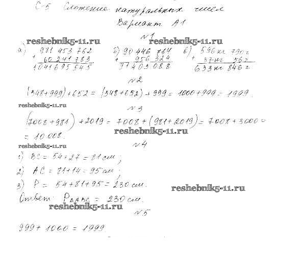 Готовая домашняя работа с ответами по Математике за 5 класс Ершова, Голобородько Самостоятельные и контрольные работы Илекса 2015 ФГОС - СР-4. Варианты А1