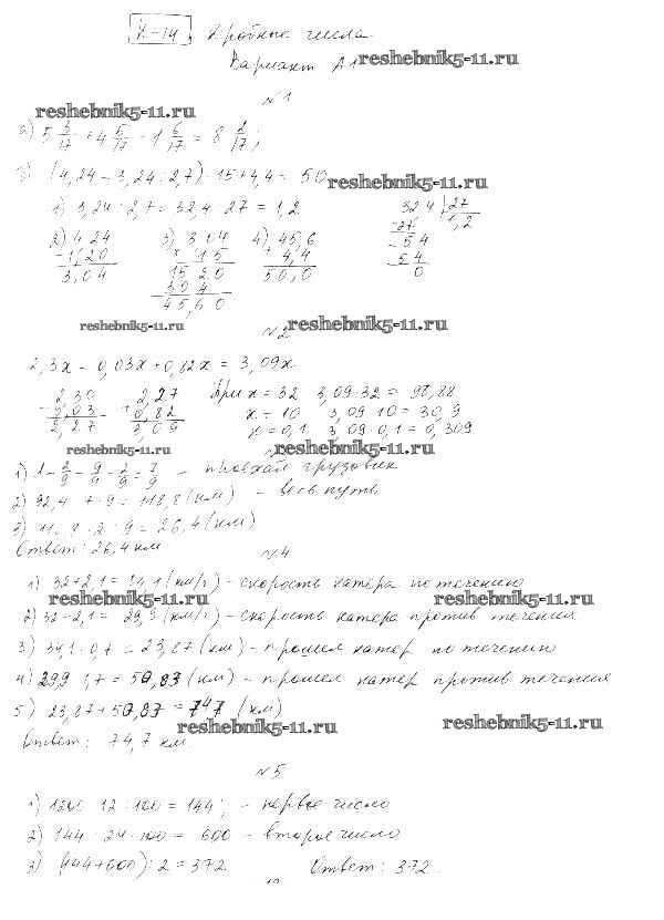 Готовая домашняя работа с ответами по Математике за 5 класс Ершова, Голобородько Самостоятельные и контрольные работы Илекса 2015 ФГОС - КР-14. Варианты А1