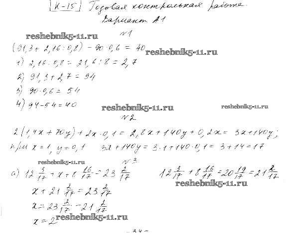 Готовая домашняя работа с ответами по Математике за 5 класс Ершова, Голобородько Самостоятельные и контрольные работы Илекса 2015 ФГОС - КР-15. Варианты А1