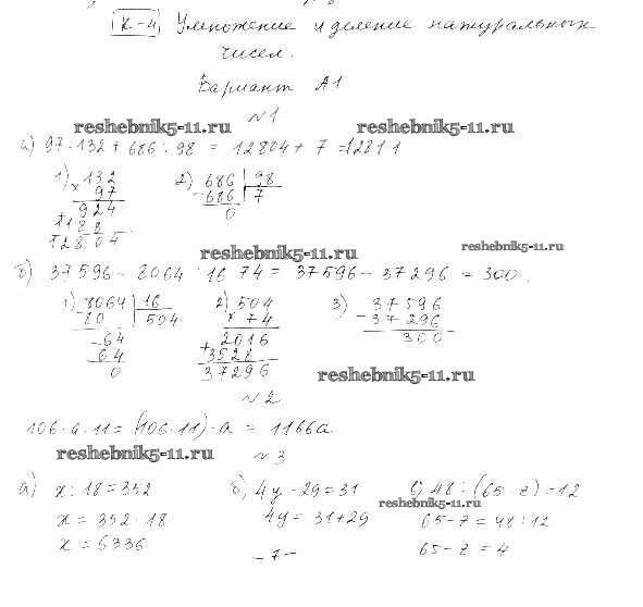 Готовая домашняя работа с ответами по Математике за 5 класс Ершова, Голобородько Самостоятельные и контрольные работы Илекса 2015 ФГОС - КР-4. Варианты А1