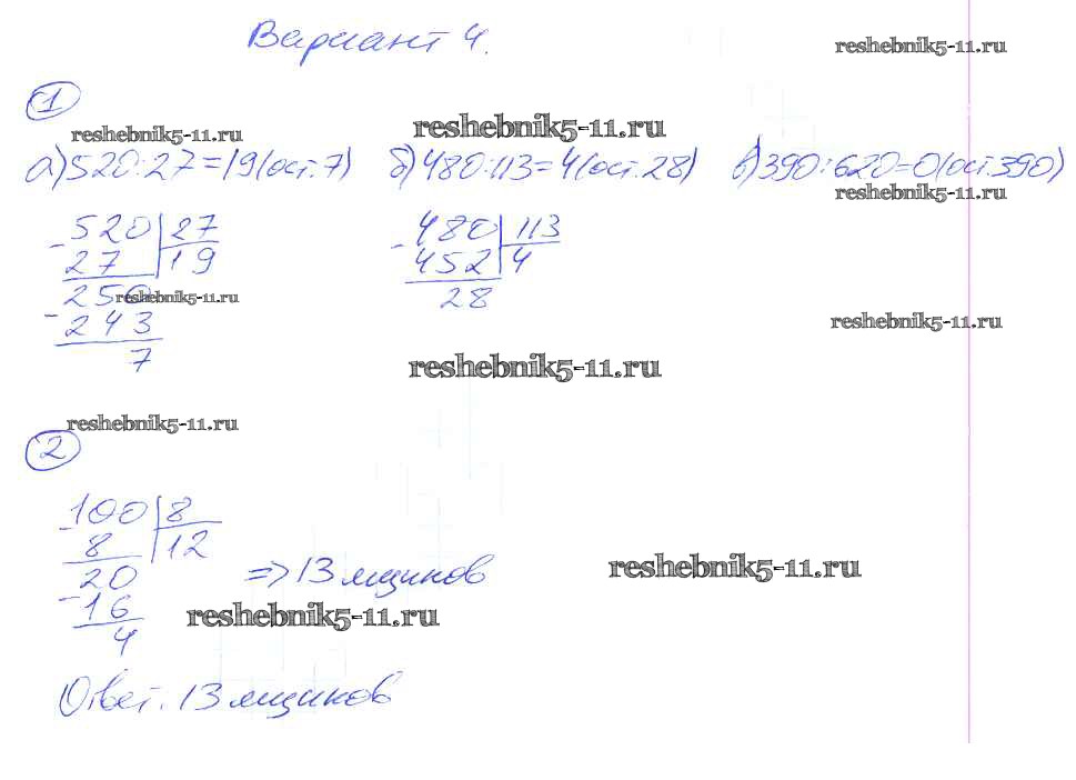Готовая домашняя работа с ответами по Математике за 5 класс Рудницкая Дидактические материалы УМК Экзамен 2017 ФГОС - СР-17. Варианты 4