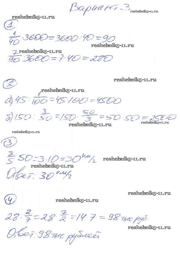 Готовая домашняя работа с ответами по Математике за 5 класс Рудницкая Дидактические материалы УМК Экзамен 2017 ФГОС - СР-19. Варианты 3