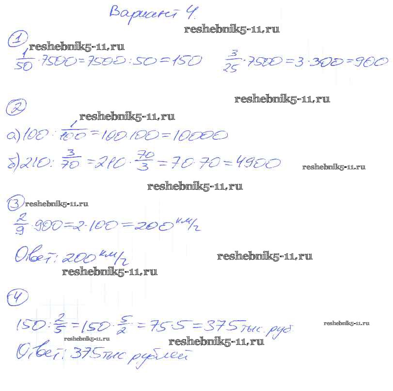 Готовая домашняя работа с ответами по Математике за 5 класс Рудницкая Дидактические материалы УМК Экзамен 2017 ФГОС - СР-19. Варианты 4