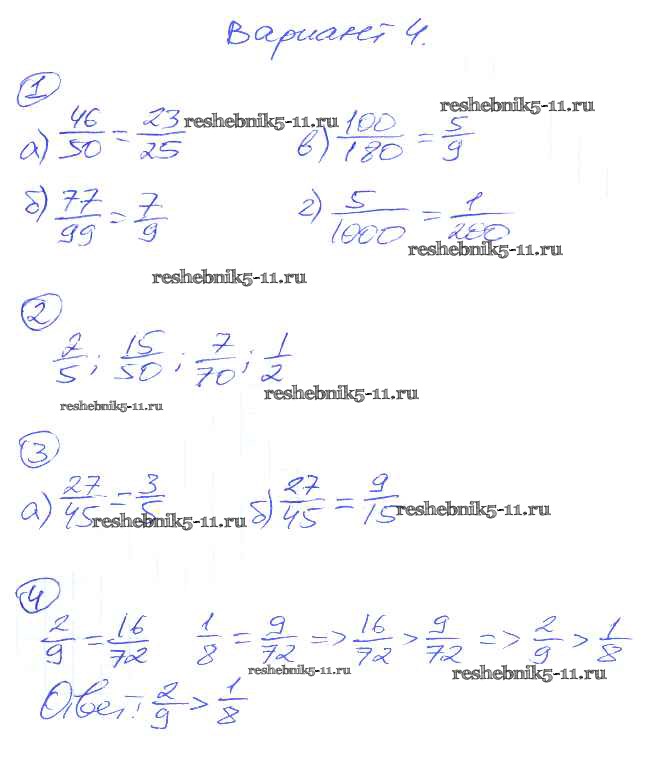 Готовая домашняя работа с ответами по Математике за 5 класс Рудницкая Дидактические материалы УМК Экзамен 2017 ФГОС - СР-20. Варианты 4