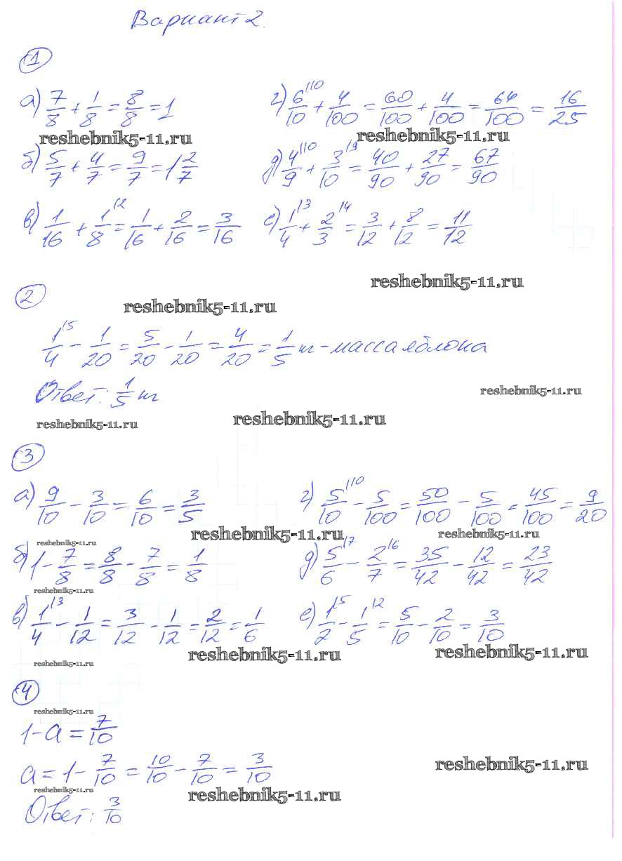 Готовая домашняя работа с ответами по Математике за 5 класс Рудницкая Дидактические материалы УМК Экзамен 2017 ФГОС - СР-23. Варианты 2