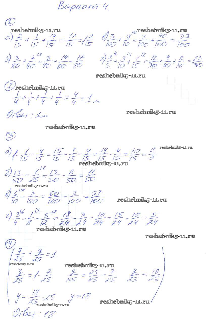 Готовая домашняя работа с ответами по Математике за 5 класс Рудницкая Дидактические материалы УМК Экзамен 2017 ФГОС - СР-23. Варианты 4