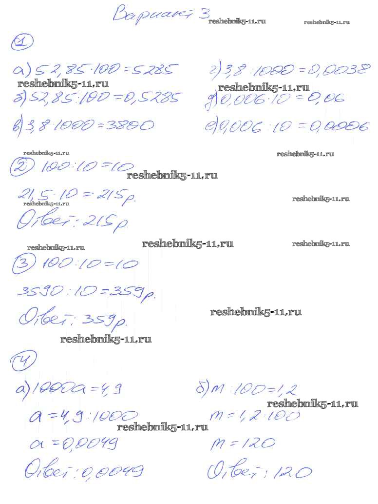 Готовая домашняя работа с ответами по Математике за 5 класс Рудницкая Дидактические материалы УМК Экзамен 2017 ФГОС - СР-36. Варианты 3