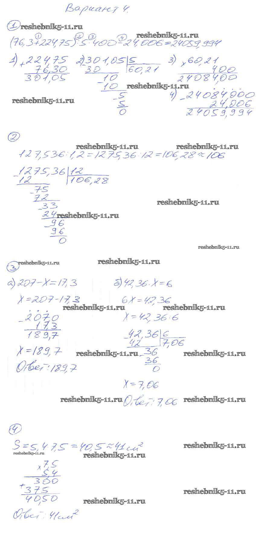 Готовая домашняя работа с ответами по Математике за 5 класс Рудницкая Дидактические материалы УМК Экзамен 2017 ФГОС - СР-45. Варианты 4