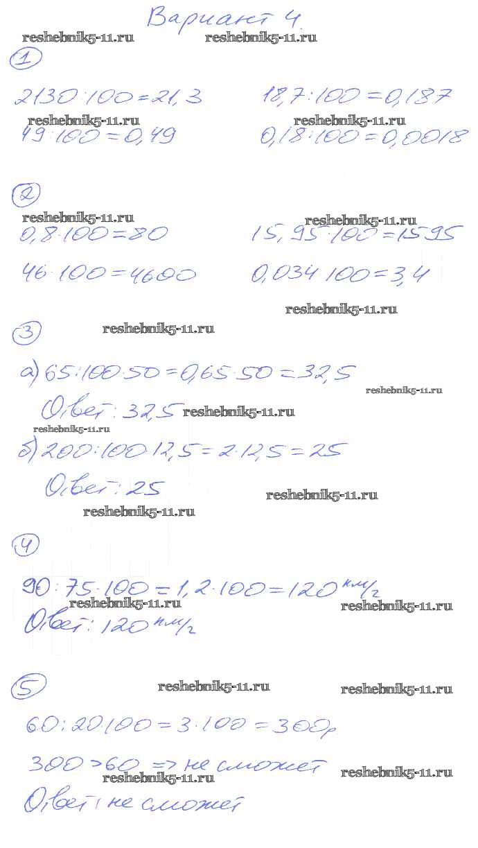 Готовая домашняя работа с ответами по Математике за 5 класс Рудницкая Дидактические материалы УМК Экзамен 2017 ФГОС - СР-46. Варианты 4