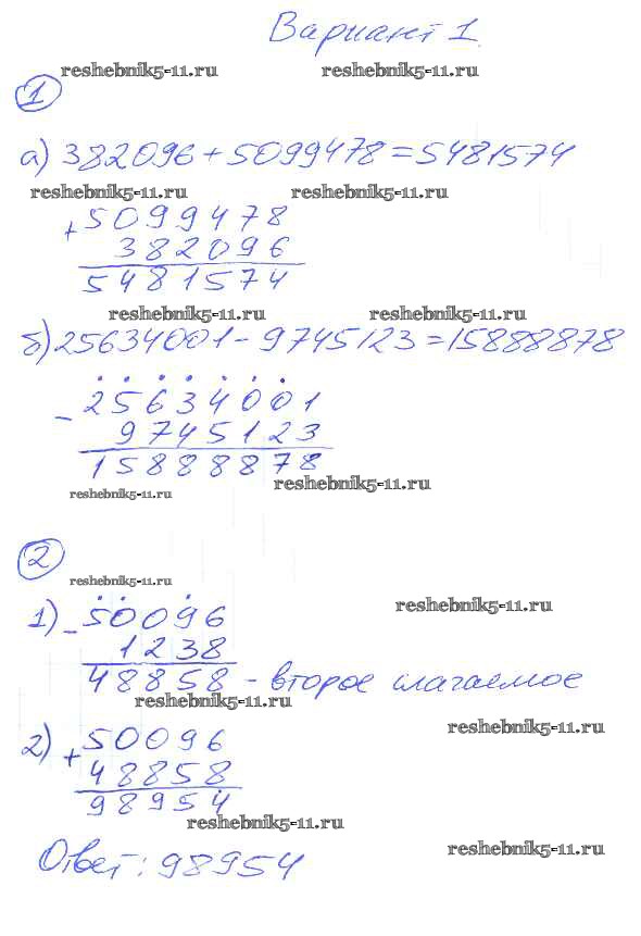 Готовая домашняя работа с ответами по Математике за 5 класс Рудницкая Дидактические материалы УМК Экзамен 2017 ФГОС - СР-8. Варианты 1