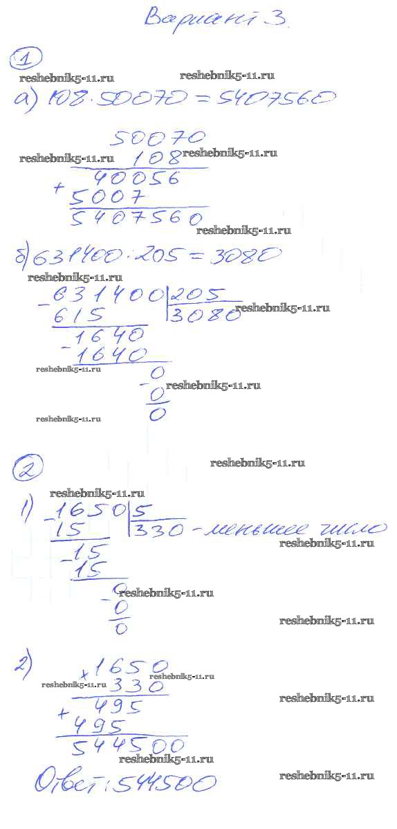 Готовая домашняя работа с ответами по Математике за 5 класс Рудницкая Дидактические материалы УМК Экзамен 2017 ФГОС - СР-9. Варианты 3