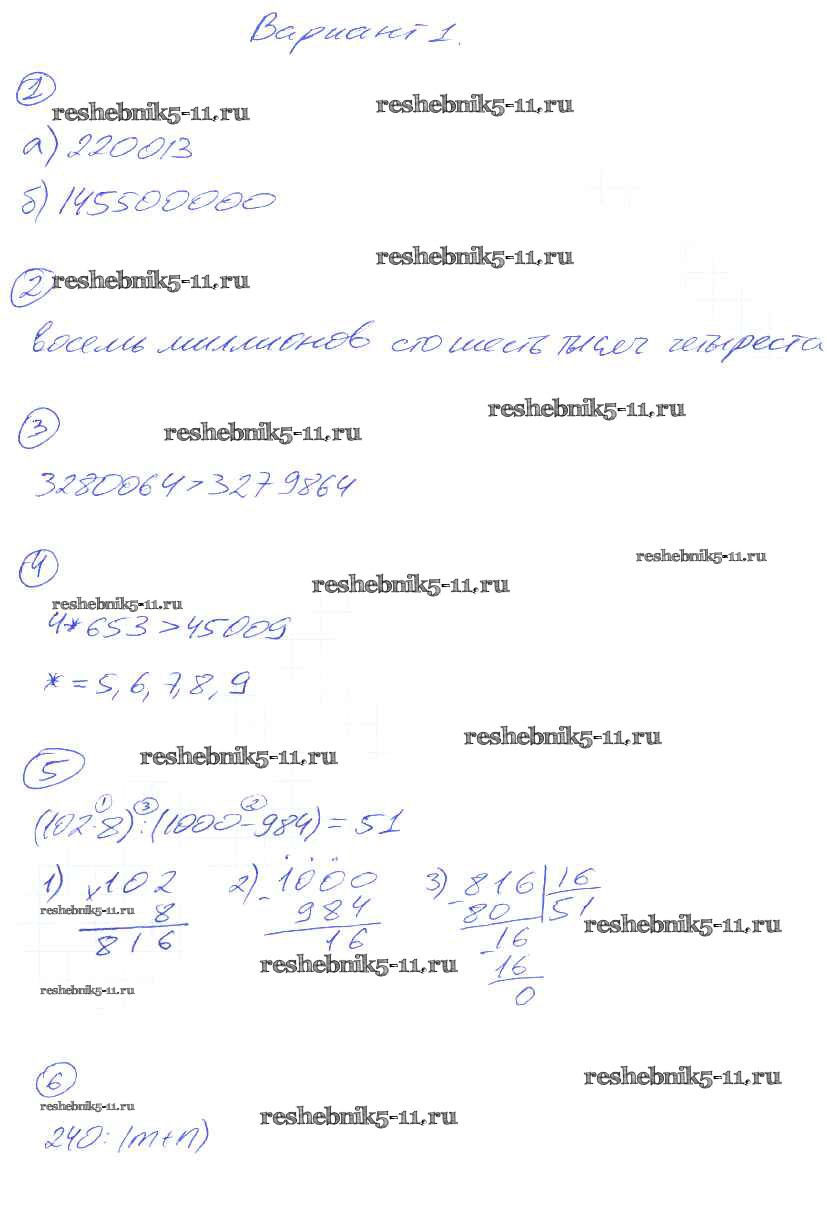 Готовая домашняя работа с ответами по Математике за 5 класс Рудницкая Дидактические материалы УМК Экзамен 2017 ФГОС - КР-1. Варианты 1