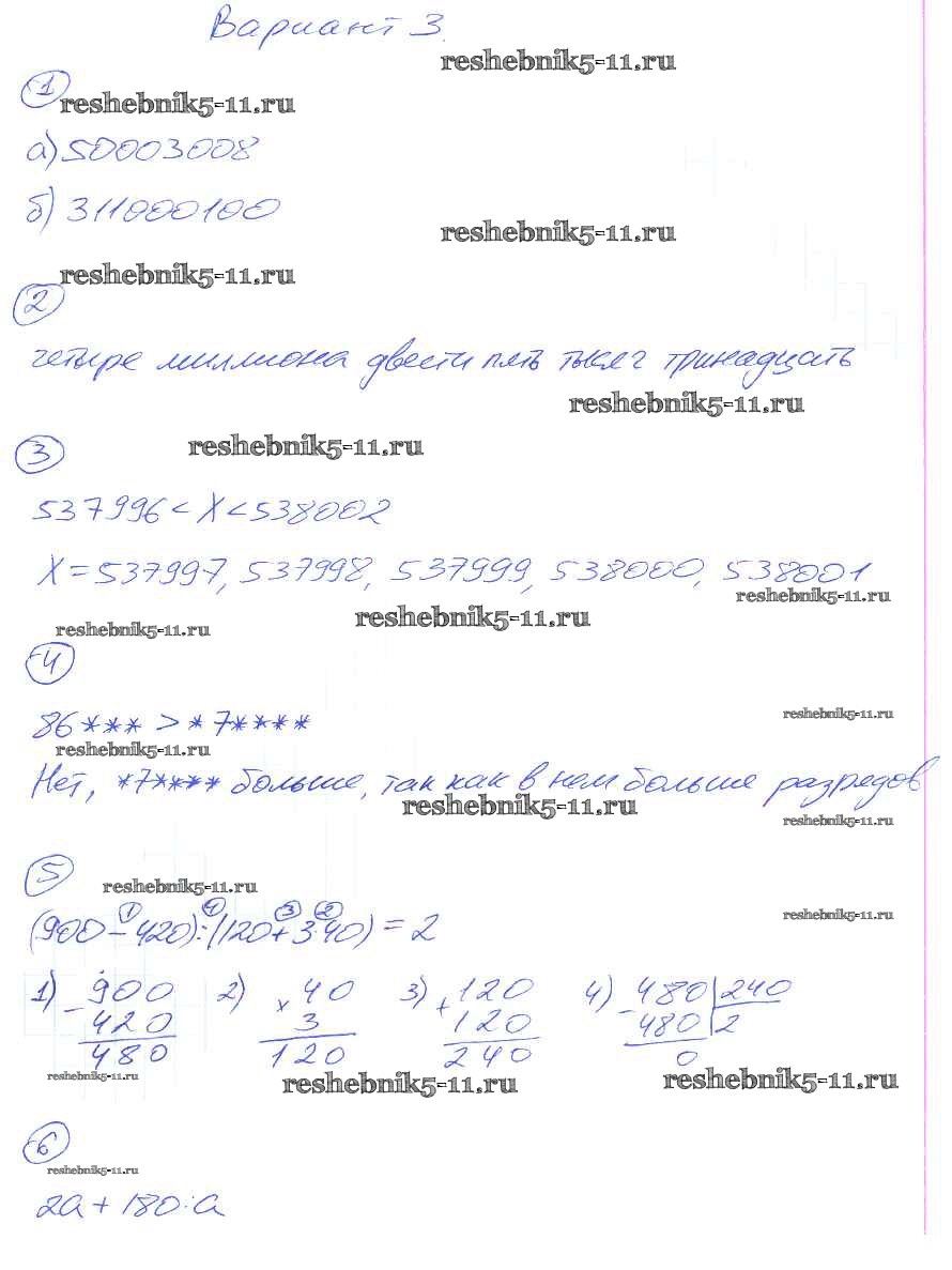 Готовая домашняя работа с ответами по Математике за 5 класс Рудницкая Дидактические материалы УМК Экзамен 2017 ФГОС - КР-1. Варианты 3