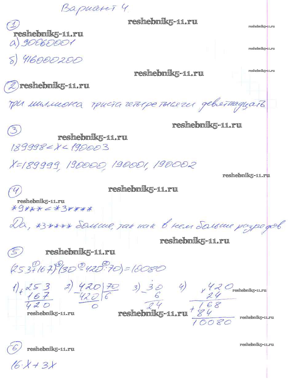 Готовая домашняя работа с ответами по Математике за 5 класс Рудницкая Дидактические материалы УМК Экзамен 2017 ФГОС - КР-1. Варианты 4