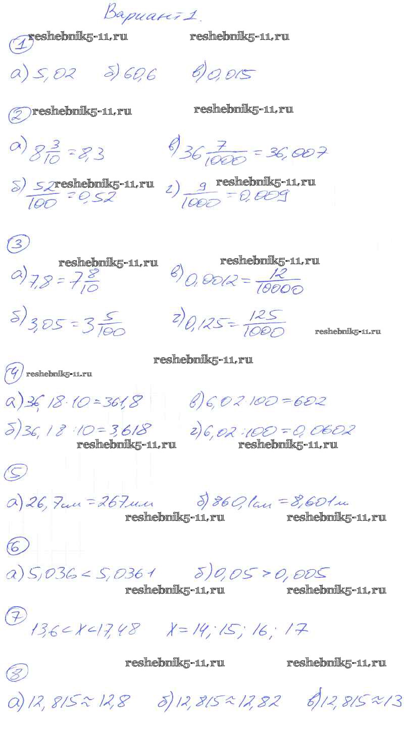 Готовая домашняя работа с ответами по Математике за 5 класс Рудницкая Дидактические материалы УМК Экзамен 2017 ФГОС - КР-11. Варианты 1