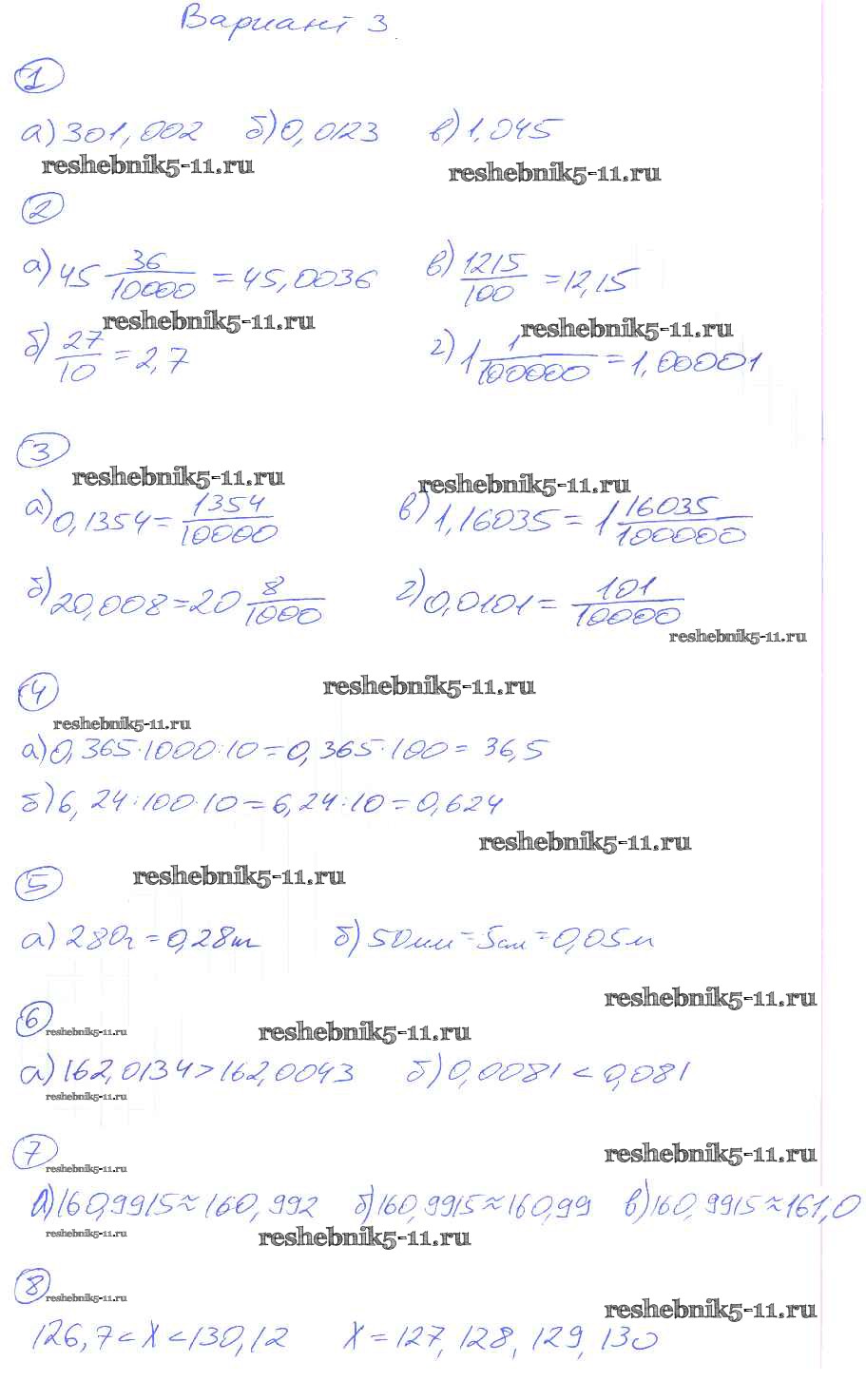 Готовая домашняя работа с ответами по Математике за 5 класс Рудницкая Дидактические материалы УМК Экзамен 2017 ФГОС - КР-11. Варианты 3