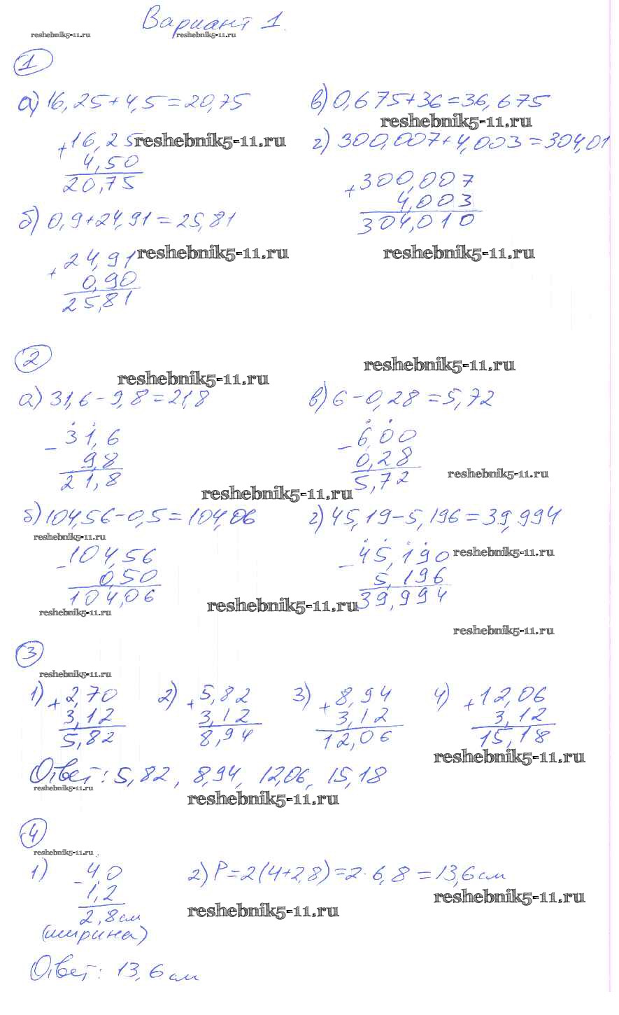 Готовая домашняя работа с ответами по Математике за 5 класс Рудницкая Дидактические материалы УМК Экзамен 2017 ФГОС - КР-12. Варианты 1