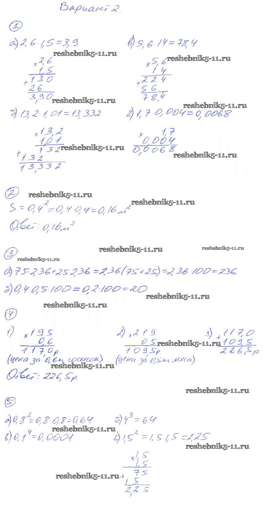 Готовая домашняя работа с ответами по Математике за 5 класс Рудницкая Дидактические материалы УМК Экзамен 2017 ФГОС - КР-13. Варианты 2