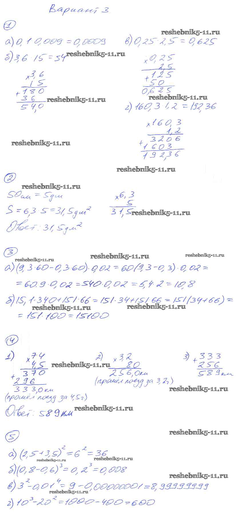 Готовая домашняя работа с ответами по Математике за 5 класс Рудницкая Дидактические материалы УМК Экзамен 2017 ФГОС - КР-13. Варианты 3
