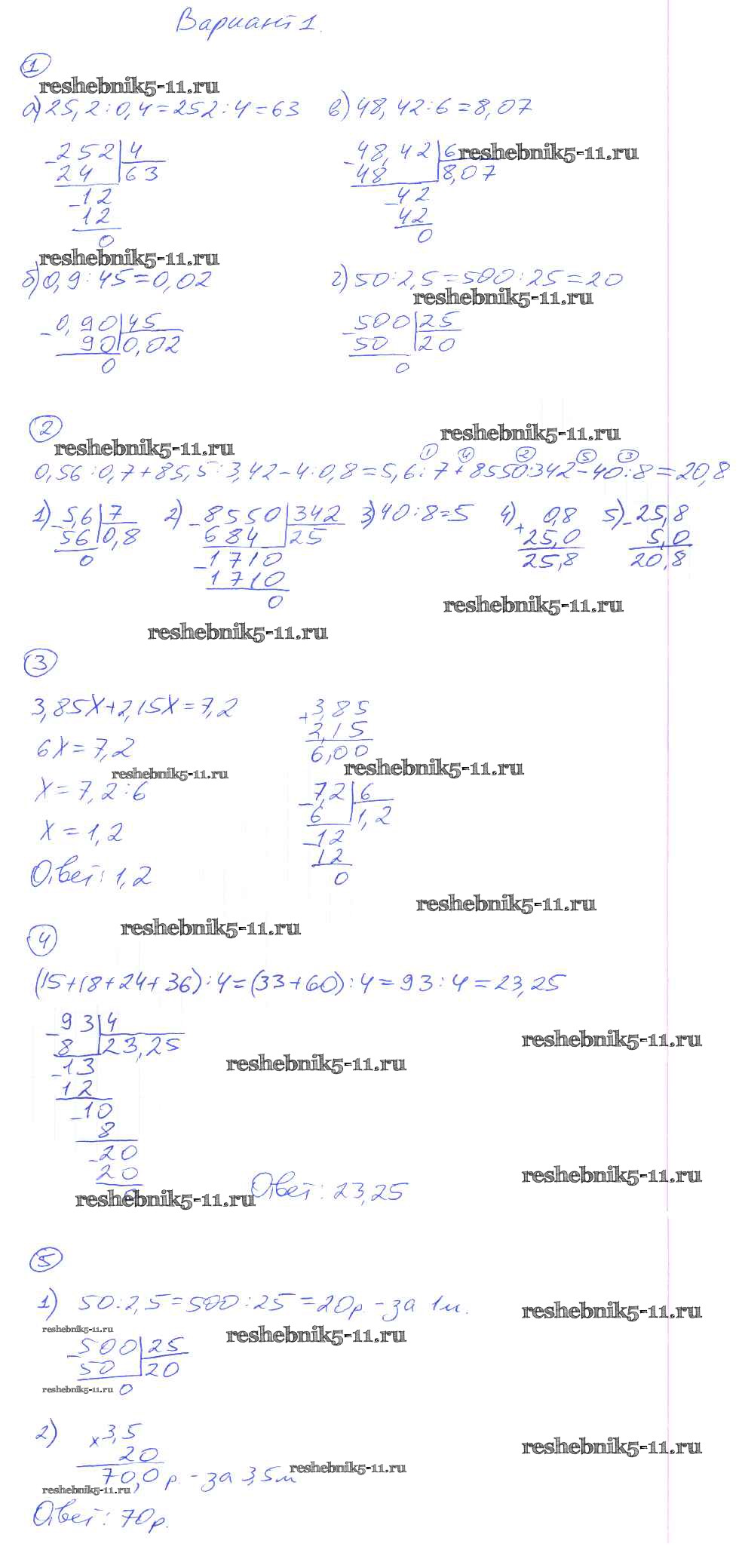 Готовая домашняя работа с ответами по Математике за 5 класс Рудницкая Дидактические материалы УМК Экзамен 2017 ФГОС - КР-14. Варианты 1