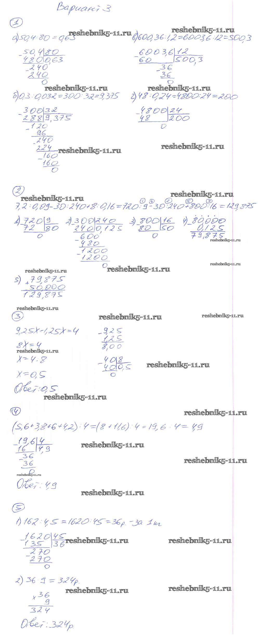 Готовая домашняя работа с ответами по Математике за 5 класс Рудницкая Дидактические материалы УМК Экзамен 2017 ФГОС - КР-14. Варианты 3