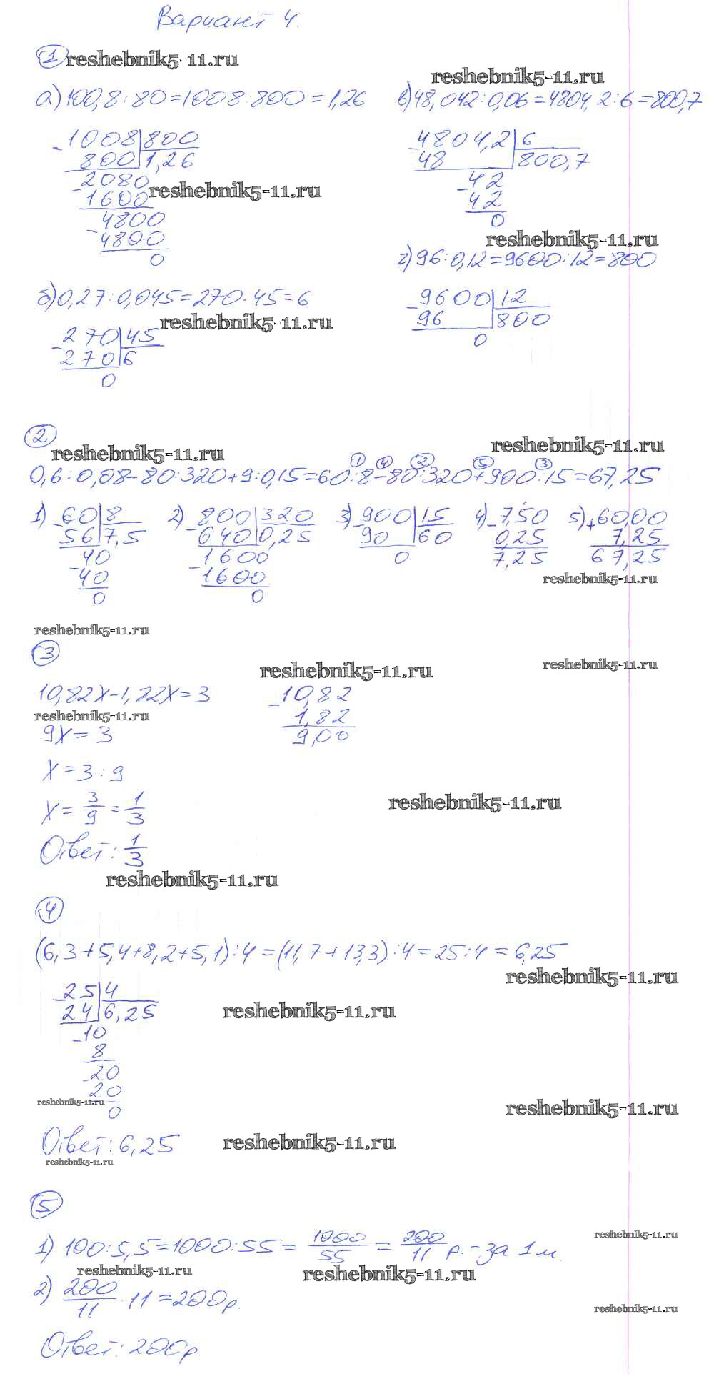 Готовая домашняя работа с ответами по Математике за 5 класс Рудницкая Дидактические материалы УМК Экзамен 2017 ФГОС - КР-14. Варианты 4