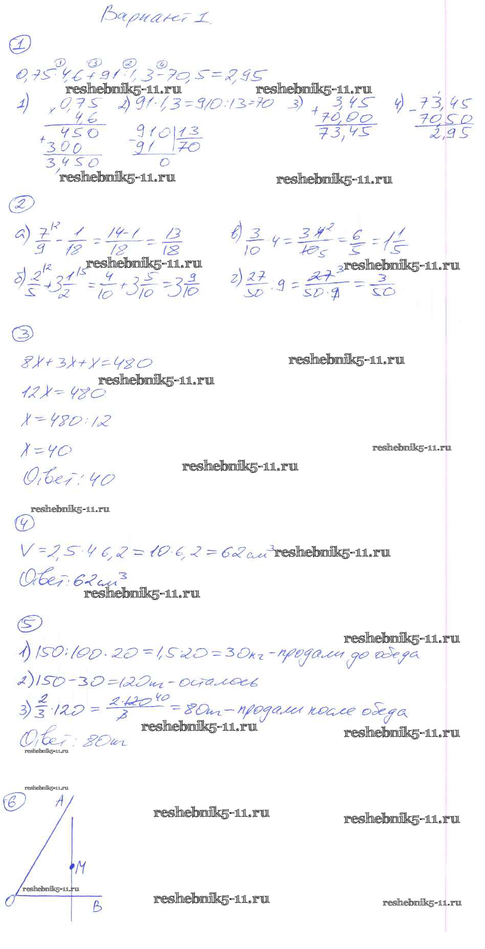 Готовая домашняя работа с ответами по Математике за 5 класс Рудницкая Дидактические материалы УМК Экзамен 2017 ФГОС - КР-16. Варианты 1