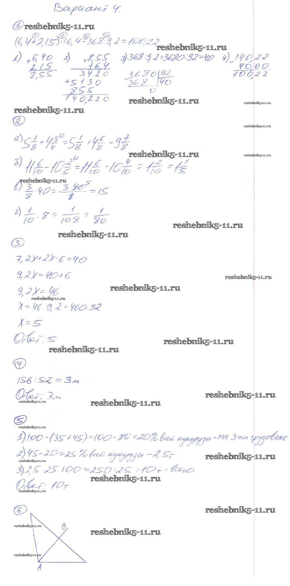 Готовая домашняя работа с ответами по Математике за 5 класс Рудницкая Дидактические материалы УМК Экзамен 2017 ФГОС - КР-16. Варианты 4