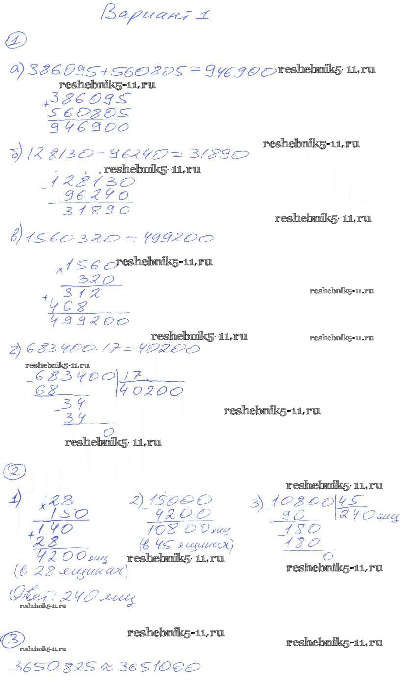 Готовая домашняя работа с ответами по Математике за 5 класс Рудницкая Дидактические материалы УМК Экзамен 2017 ФГОС - КР-3. Варианты 1