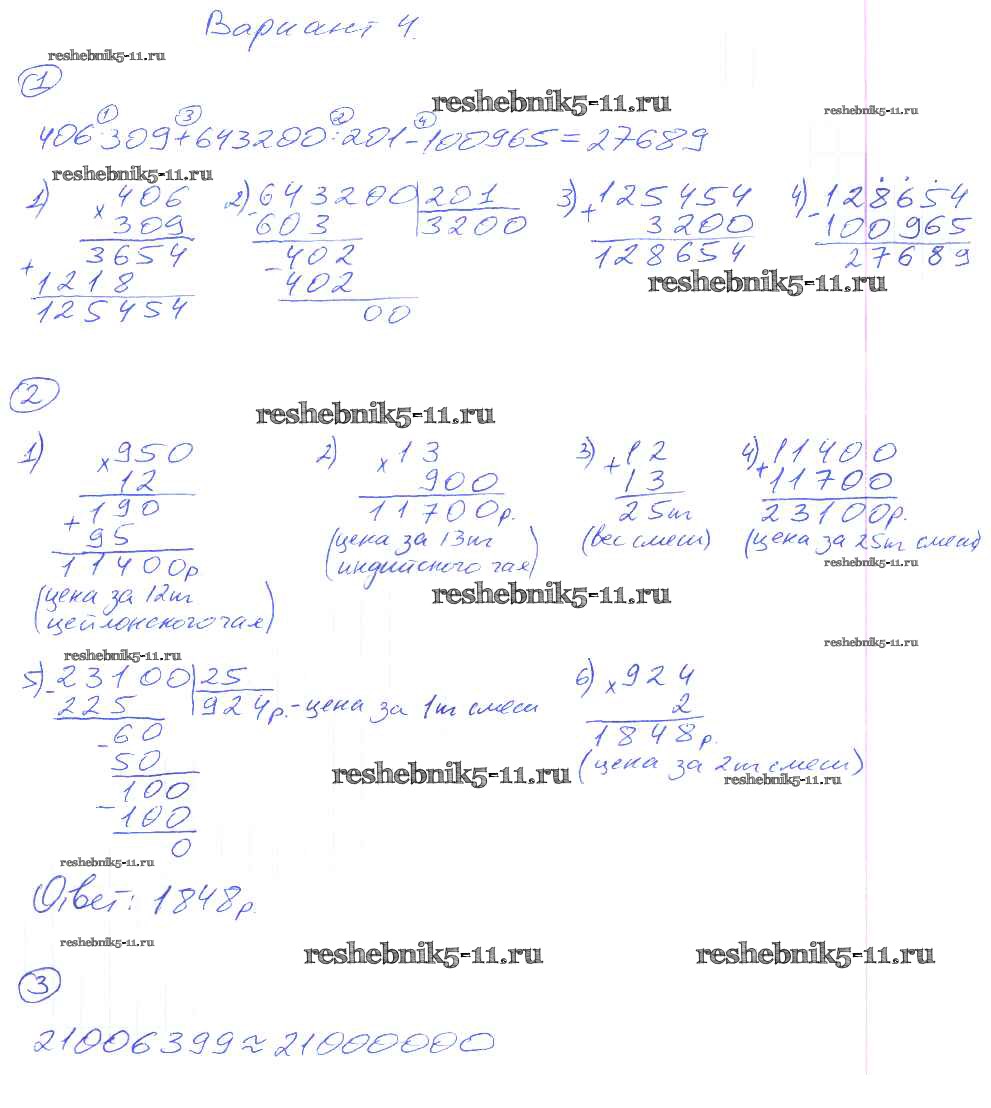 Готовая домашняя работа с ответами по Математике за 5 класс Рудницкая Дидактические материалы УМК Экзамен 2017 ФГОС - КР-3. Варианты 4