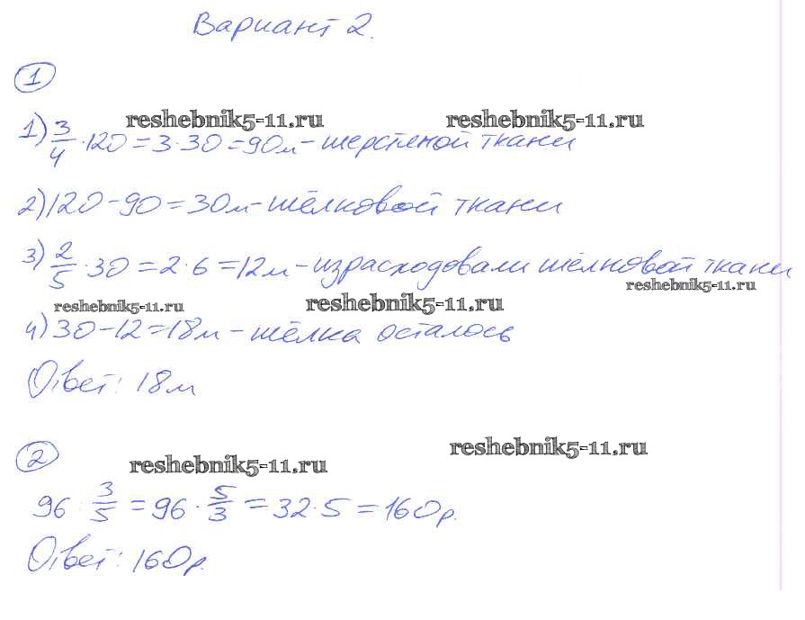 Готовая домашняя работа с ответами по Математике за 5 класс Рудницкая Дидактические материалы УМК Экзамен 2017 ФГОС - КР-6. Варианты 2