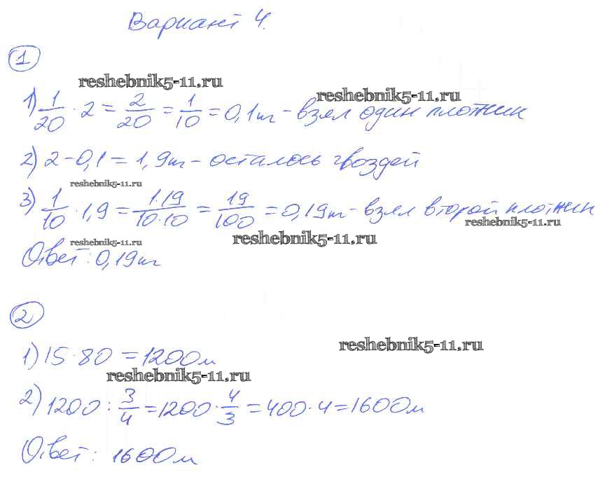 Математика за 5 класс Рудницкая Дидактические материалы УМК Экзамен кр-6. вариант 4