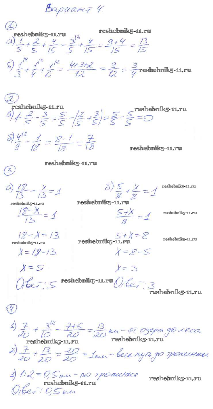 Готовая домашняя работа с ответами по Математике за 5 класс Рудницкая Дидактические материалы УМК Экзамен 2017 ФГОС - КР-7. Варианты 4