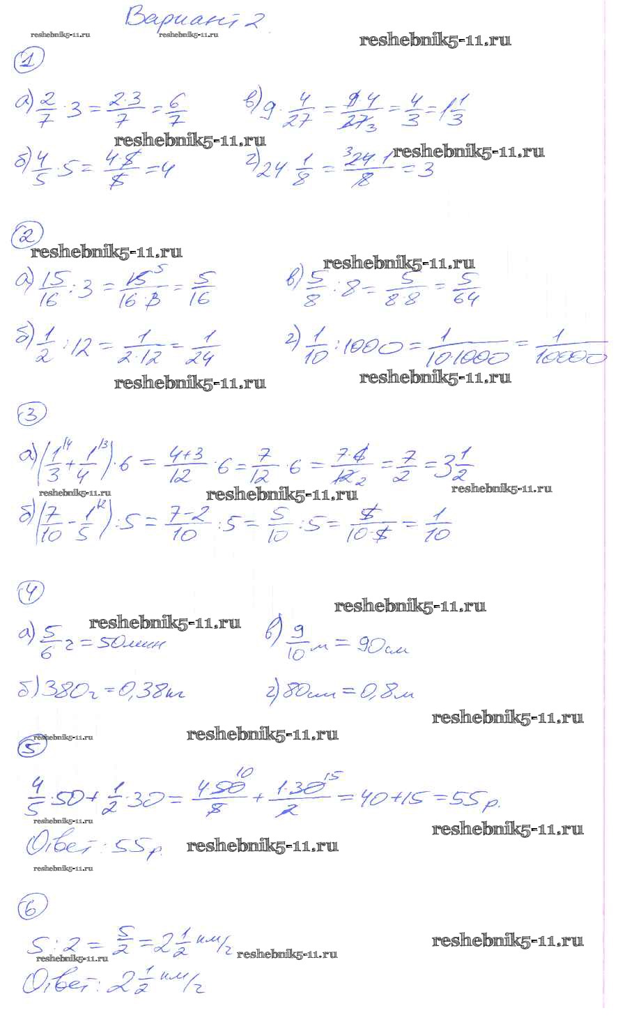 Готовая домашняя работа с ответами по Математике за 5 класс Рудницкая Дидактические материалы УМК Экзамен 2017 ФГОС - КР-8. Варианты 2