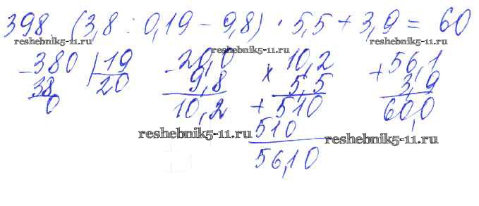 Готовая домашняя работа с ответами по Математике за 5 класс Чесноков, Нешков Дидактические материалы Академкнига 2014 ФГОС - Вариант 1 398