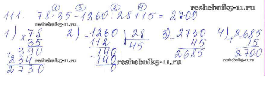 Готовая домашняя работа с ответами по Математике за 5 класс Чесноков, Нешков Дидактические материалы Академкнига 2014 ФГОС - Вариант 4 111
