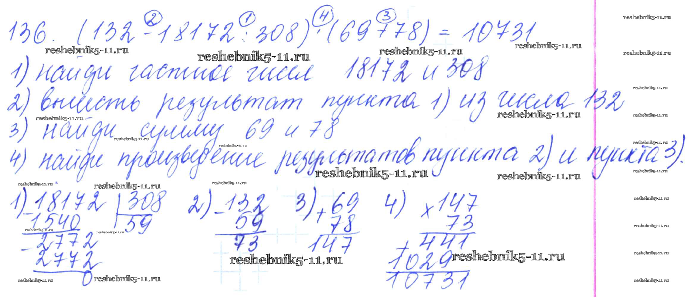 Готовая домашняя работа с ответами по Математике за 5 класс Чесноков, Нешков Дидактические материалы Академкнига 2014 ФГОС - Вариант 4 136