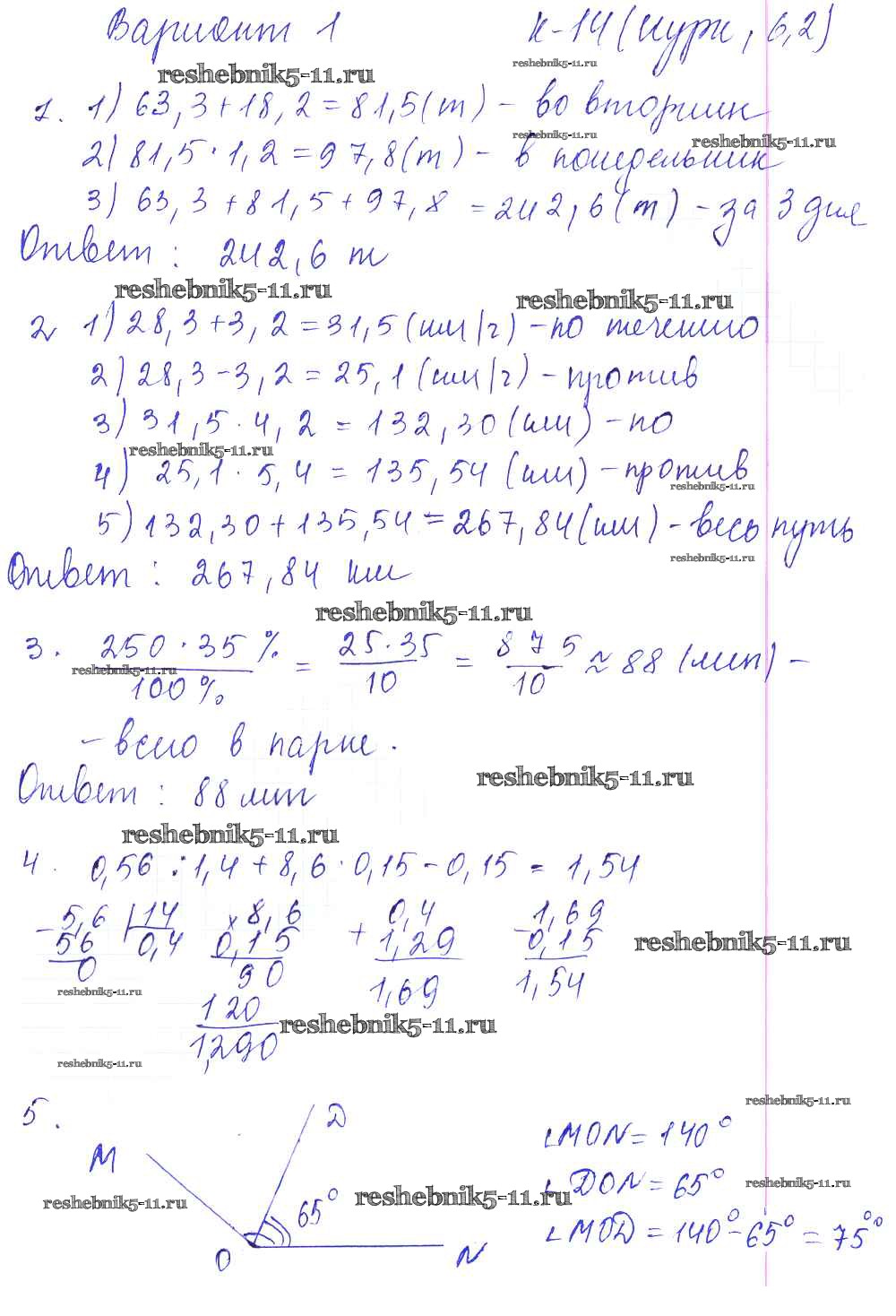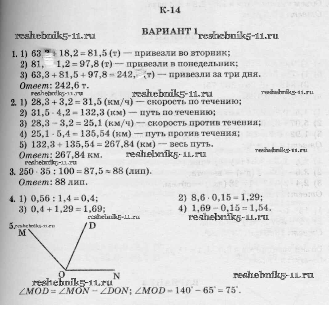 Готовая домашняя работа с ответами по Математике за 5 класс Чесноков, Нешков Дидактические материалы Академкнига 2014 ФГОС - КР-14. Варианты 1