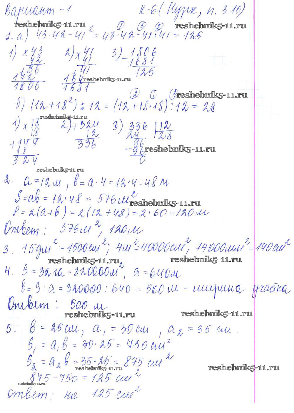 Готовая домашняя работа с ответами по Математике за 5 класс Чесноков, Нешков Дидактические материалы Академкнига 2014 ФГОС - КР-6. Варианты 1